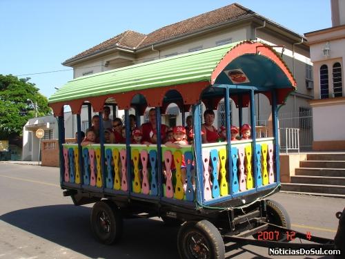 O Tradicional Trenzinho de natal de São Sebastião do Caí já começou a circular pelas ruas da cidade. Na verdade, nesse primeiro momento, só estão sendo feitas viagens com as crianças das escolas.