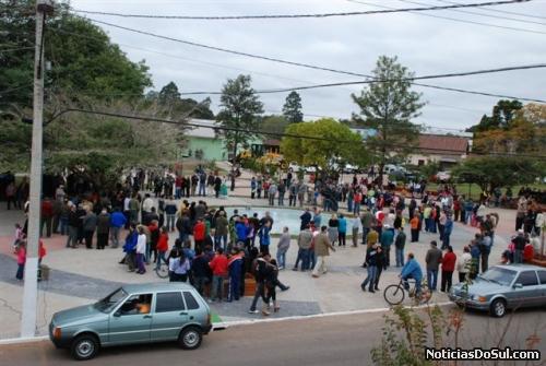 O renovado visual da praça foi entregue à comunidade, que compareceu em grande número, com festa. Em palanque montado próximo do acesso à Igreja Matriz Três Santos Mártires das Missões, autoridades destacaram os objetivos e os desafios da realização do investimento, que ultrapassou a marca de R$ 120 mil.