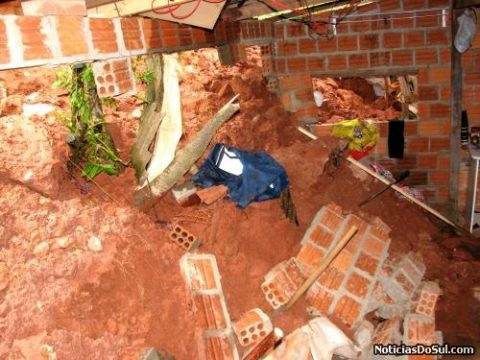 Queda de barreira atinge casa